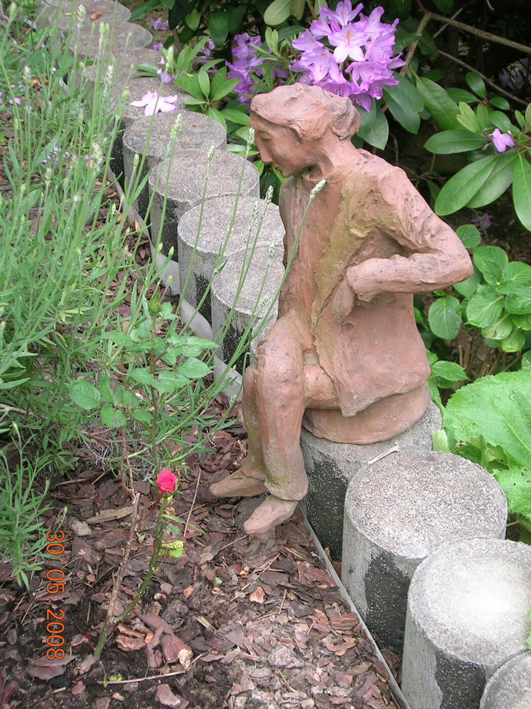 Vielleicht bin ich durch meine künstlerisch versierte Mutter ans Modellieren gekommen: Sie hängte jedes Jahr einen neuen, großen schwarz-weiß gedruckten Kalender mit Skulpturen von Ernst BARLACH an die Wand neben dem Esstisch im Wohnzimmer. So sind seit Kindheitstagen die „russische Bettlerin“, “der Zweifler“, “der Sänger“, “die hockende Alte“, “die lesenden Klosterschüler“, “der Schwebende“, “der Empfindsame“, “die Krautpflückerin“, “der Flötenspieler“, “der tanzende Alte“ u.a. in meinem Langzeitgedächtnis gespeichert, von wo aus sie möglicherweise weiter wirken...
