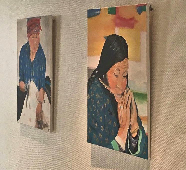 Die Geschichte, wie Birgit Frische zum Malen gekommen ist, hat was mit ihrem Beruf als Lehrerin zu tun. Es waren Fotos aus aller Welt, die sie von ihrem ehemaligen Schüler Andrés Lojo Menk von seinen Reisen geschickt bekam. Die Anfangsiebzigerin fühlte sich durch diese Urlaubsimpressionen so inspiriert, dass sie zu malen begann. „Ich war 60 Jahre als ich den ersten Kurs bei Andrea Ridder in Bielefeld belegte.“ Seit dieser Zeit hat sie die Leidenschaft Malerei nicht mehr losgelassen. Insbesondere die Porträtfotos, die Frauen bei typischen Arbeiten ihres Landes zeigen, wie zum Beispiel dem Schafe Scheren in der Mongolei, setzt die ehemalige Lehrerin für Musik, Deutsch und Literatur in Acrylfarben um. Es sind die intensiven Gesichtsausdrücke, die sie ansprechen.