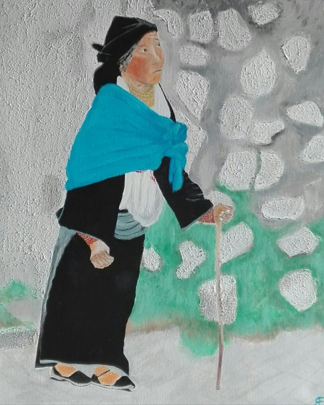 So entdecken auch Zuschauende die Sorgfalt zum Detail. Manche, die dies Bild sahen, spiegelten mir die Unerschrockenheit der Frau aus Ecuador, ihre Aufbruchstimmung, ihre Entschlossenheit, trotz kleiner Schritte und Gehhilfe. Ich verwies sie immer auf ein anderes Detail: den eingeknickten Daumen, der für mich immer eine leise versteckte Angst symbolisierte.